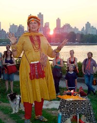 Donna Henes is an internationally renowned urban shaman, eco-ceremonialist, certified funeral celebrant, award- She has conducted public blessings of the NY Stock Exchange on Wall Street, Blessings of the Hudson River, Blessing of the Fleet for the NY Quadracentennial Celebration, and an Inauguration Purification Ritual in Washington, DC.